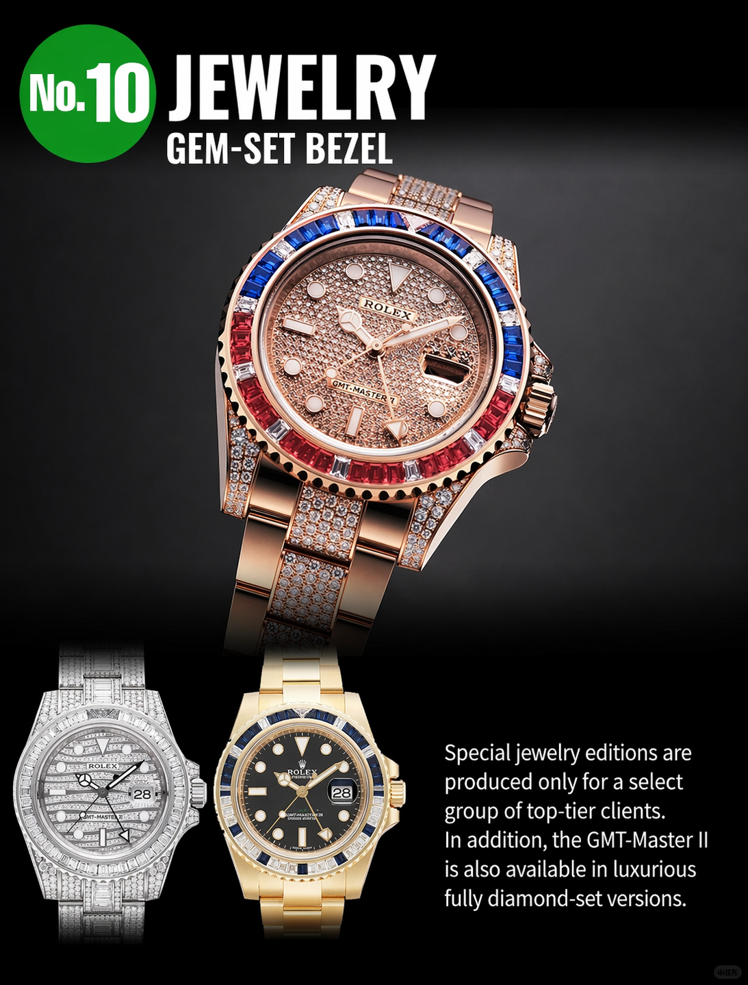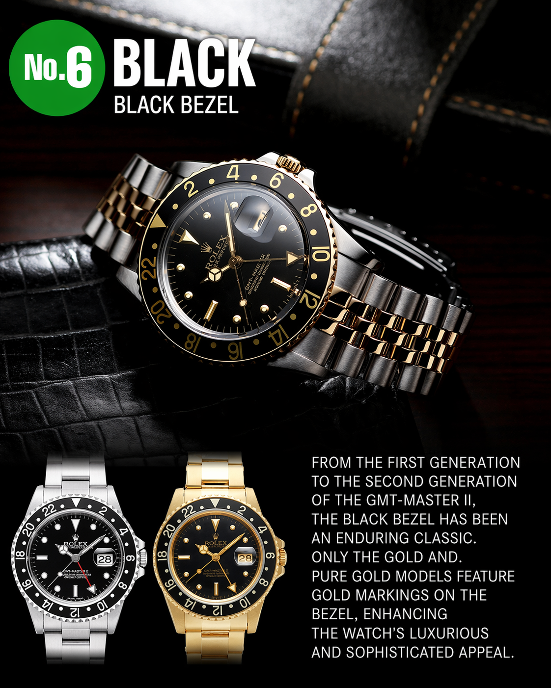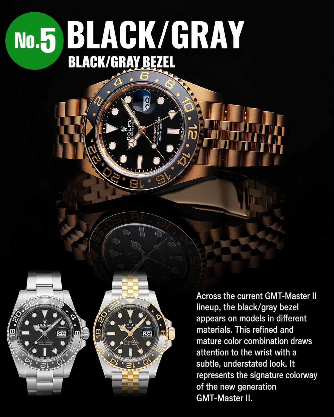 • Iconic styling: The GMT bezel is instantly recognizable and gives the watch a bold identity.