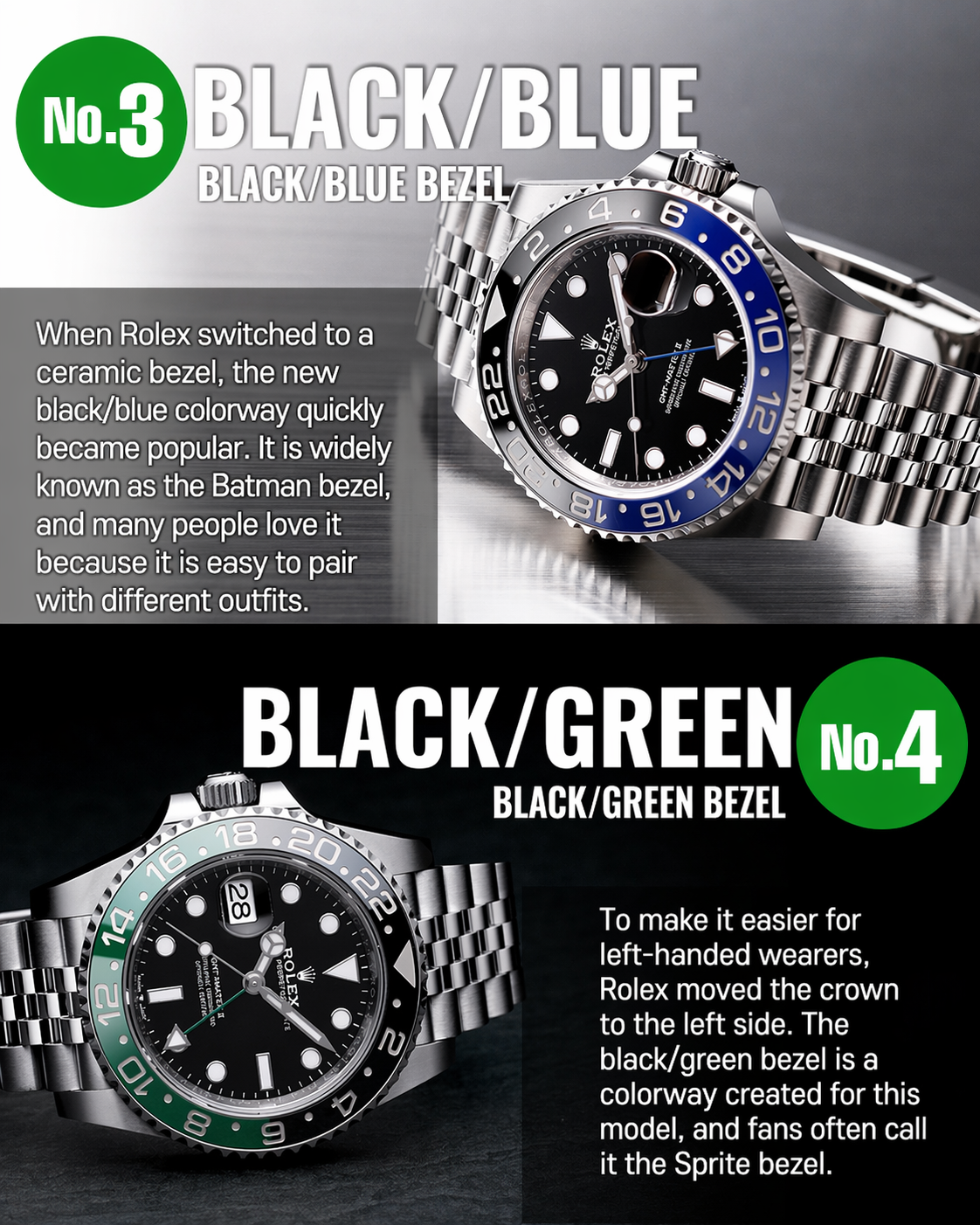 Most premium Rolex GMT replicas are offered with either an Oyster or Jubilee style bracelet. Both are strongly associated with the GMT-Master II, but they deliver very different wrist experiences.