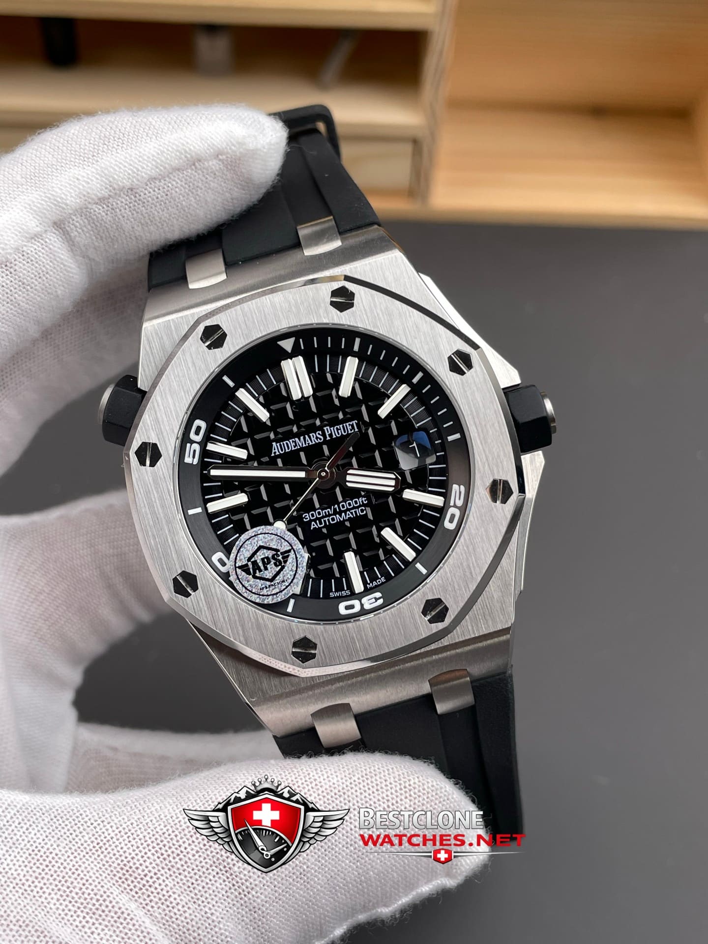 Audemars Piguet Royal Oak Offshore Diver 15703ST.OO.D002CA.01 Super Clone Watch – Black Dial Rubber Strap (1)
