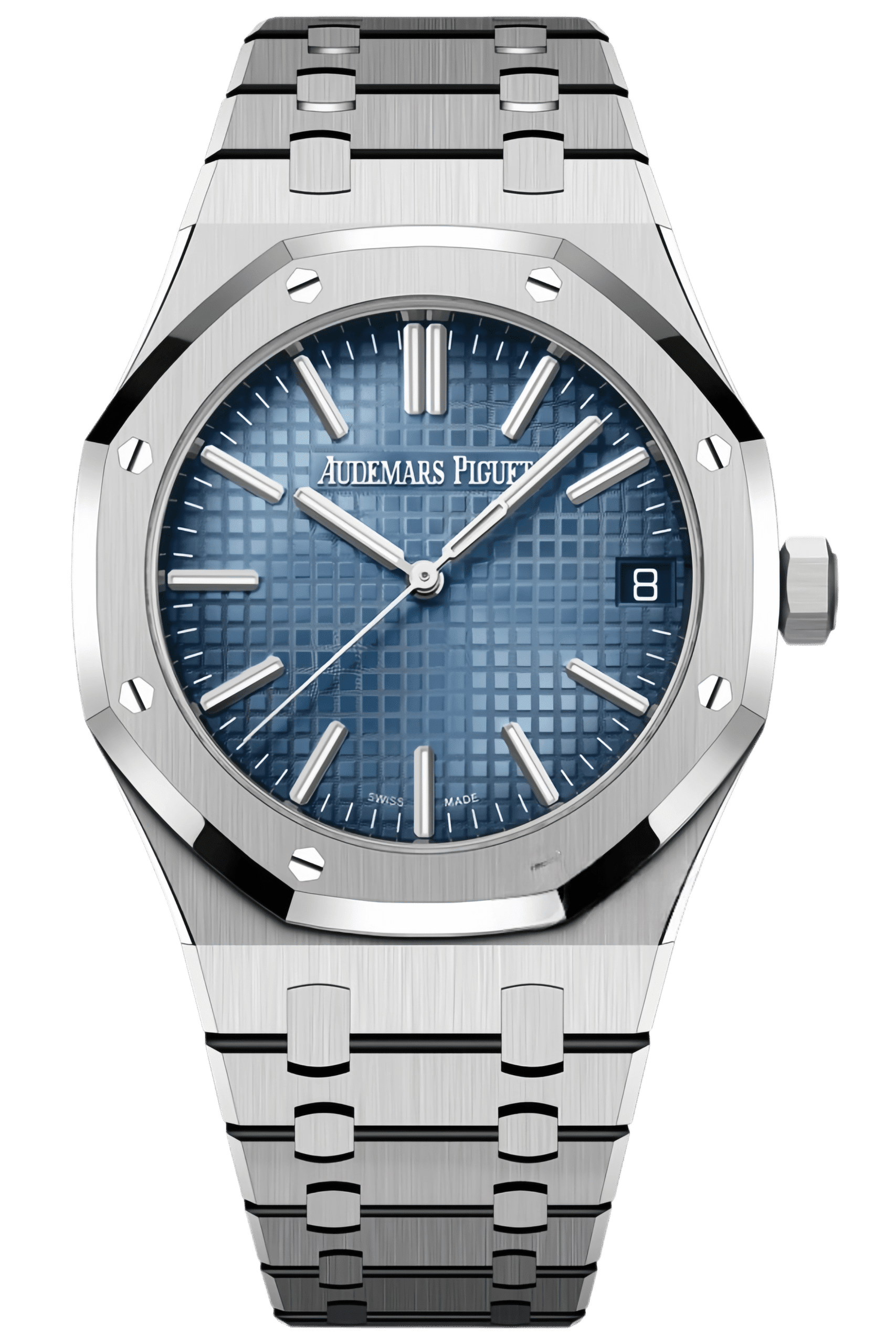| Dial | – Black “Grande Tapisserie” Pattern Dial – White Gold Applied Hour Markers – Royal Oak Hands with Lume |