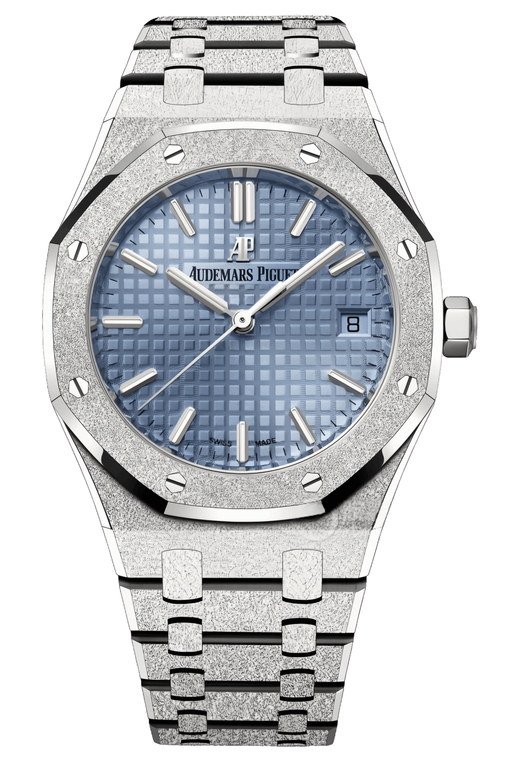 Audemars Piguet Royal Oak Ref. 77353BC.GG.1263BC.01 Super Clone Watch – 34mm White Gold Case Diamond Bezel Blue Dial Swiss Replica
