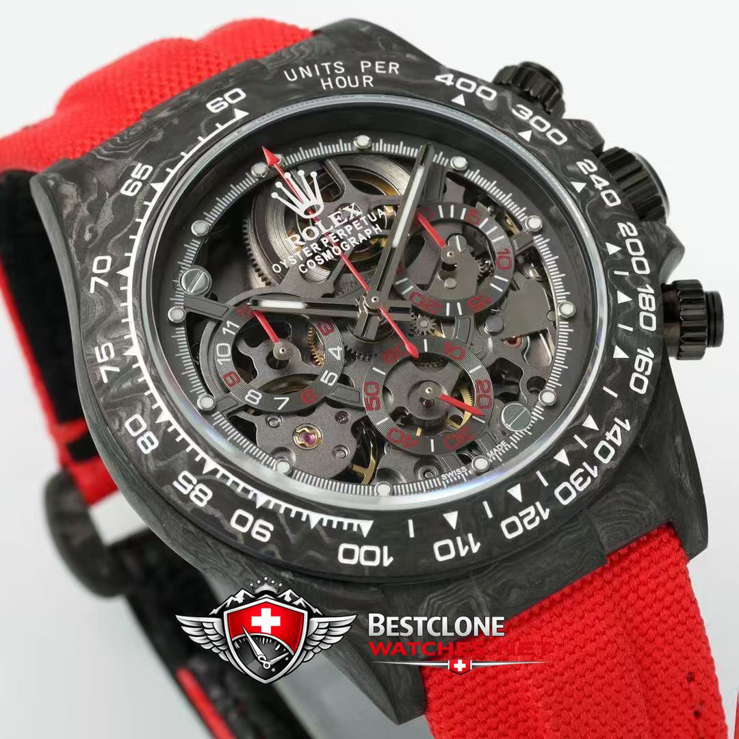DIW Rolex Daytona Carbon Skeleton Super Clone Watch – Racing Red 4130 Edition