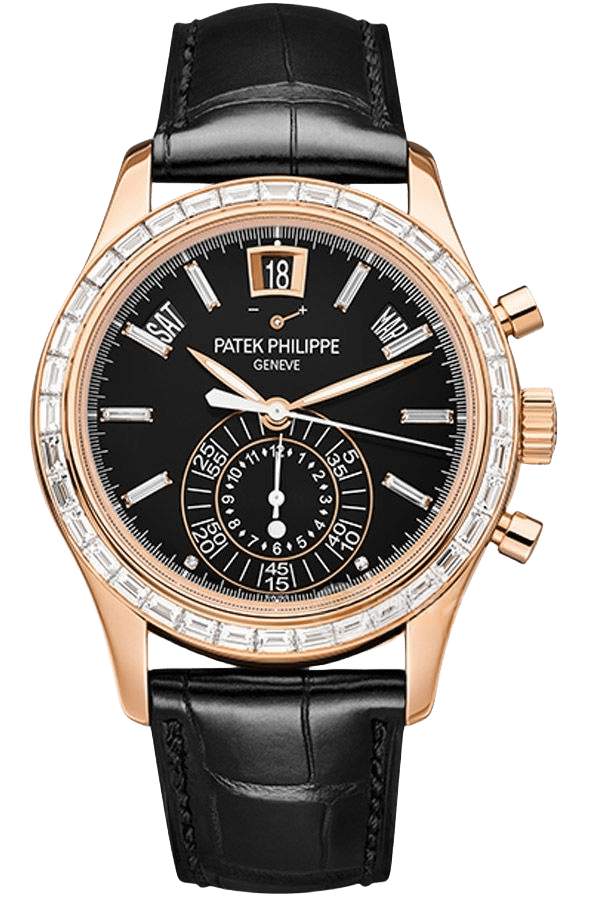 | DIAL | – Black Dial with Applied Rose Gold Hour Markers and Hands – Subdials for Chronograph and Calendar Functions |