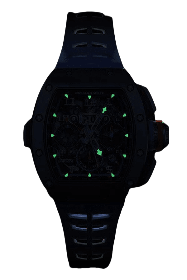 | MOVEMENT | – Exact 1:1 Richard Mille Automatic Super Clone Movement – High Precision Chronograph – Flyback Function – Skeletonized Components Visible |