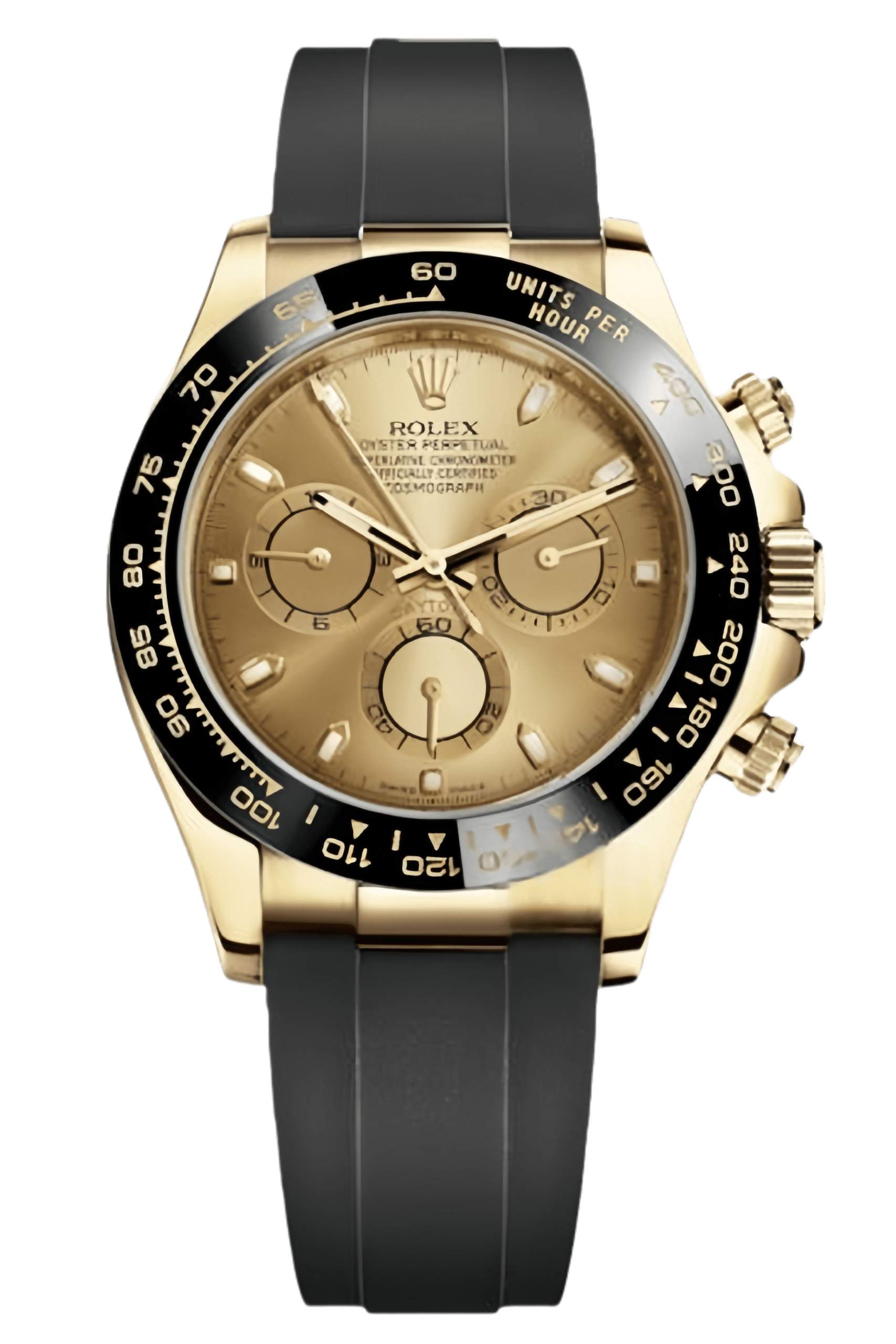 | Strap | Black Oysterflex Rubber Strap 18k Yellow Gold Folding Oysterlock Clasp |