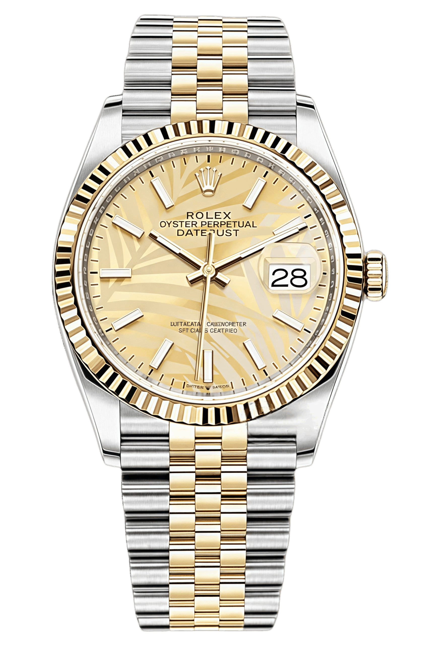 Rolex Datejust 36mm Super Clone Swiss ReplicaWatch Champagne Palm Dial Ref 126233 3235Swiss Movement