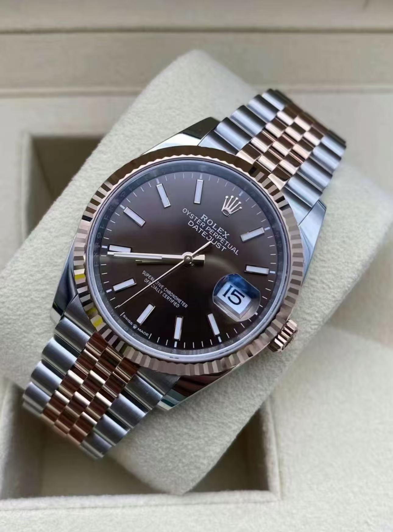 Rolex Datejust 36mm Super Clone Swiss Watch Everose Rolesor Jubilee Bracelet Slate Dial Ref M126231-0043-3235 Swiss Movement