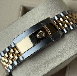 | BRACELET | – Two Tone Oyster Bracelet, three-piece flat links – Made with Solid 904L Grade Stainless Steel with DLC scratch-protection coating and 18k Yellow Gold plating on the middle links – Solid threaded screws, so you can easily remove bracelet links with just a small screwdriver – Folding Oysterclasp with Easylink 5 mm comfort extension link, exactly as Original |