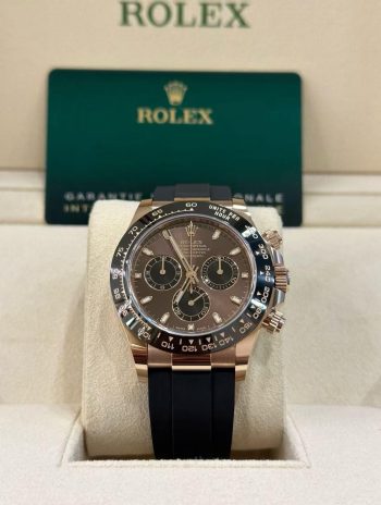Rolex Daytona 18k Rose Gold Super Clone SwissReplica Watch OysterFlex Rubber Strap Ref 116515LN 4130 Swiss Movement