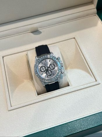 Rolex Daytona 40mm Super Clone Swiss Watch White Gold Diamond Bezel Oysterflex Strap Diamond Paved Dial Ref M126539TBR-0002 4131 Swiss Movement