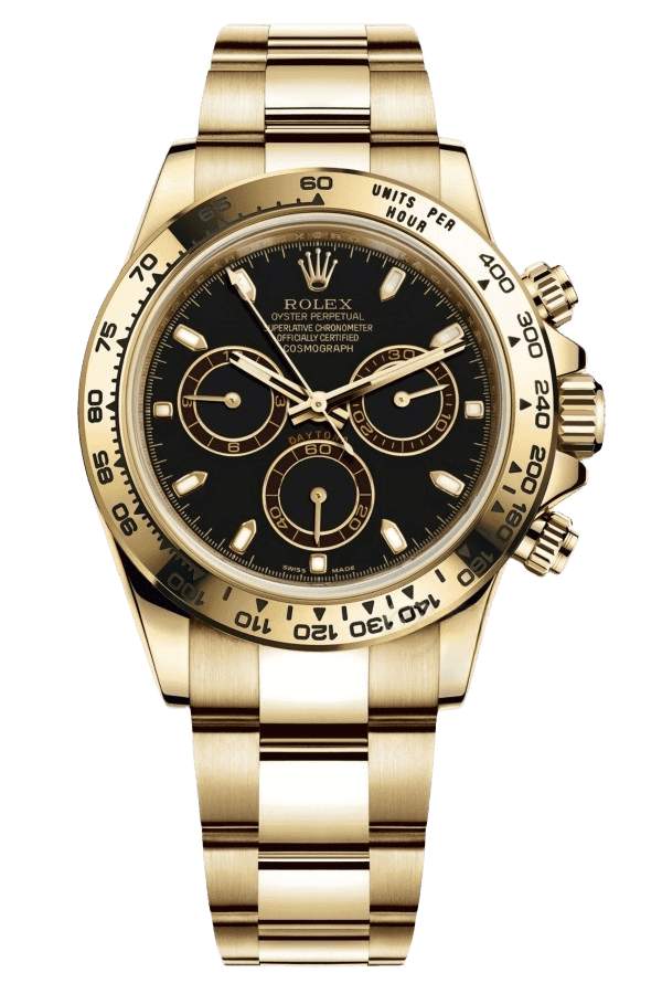 Rolex Daytona Black Dial Super Clone SwissReplica Watch 18kGold Bracelet Ref 116508-4130 Swiss Movement