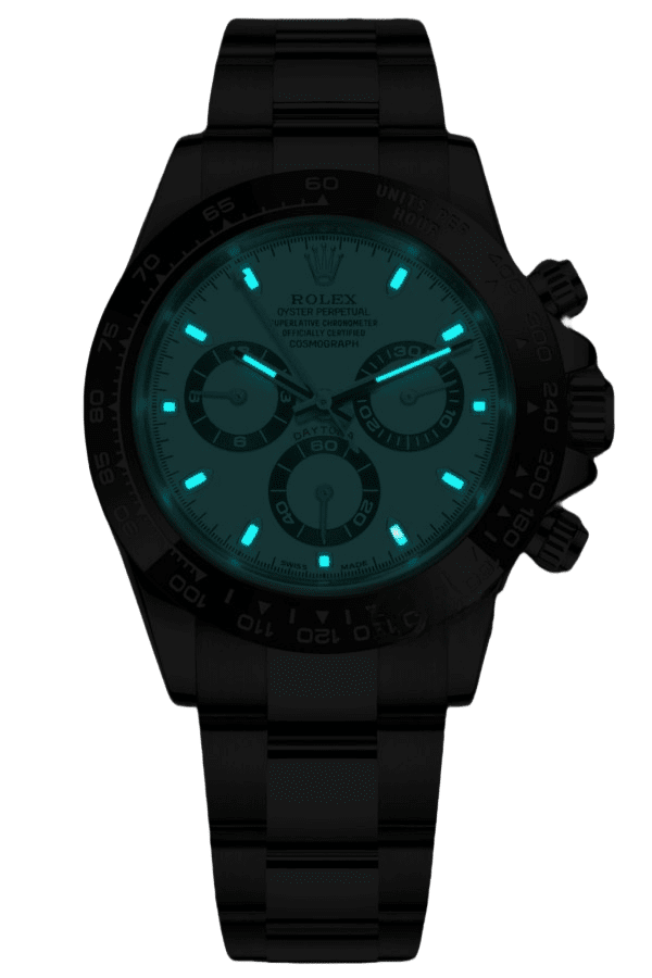 | MOVEMENT | – Exact 1:1 Rolex Calibre 4130 Chronograph Super Clone Automatic Swiss Movement – All 3 Working Chronographs with Stop Watch Functions, Exactly Same as Original – Correct Serial Numbers and Identical ‘Rolex Geneve’ ‘4130’ etc, Gold Engraved Markings on all small movement parts – Winding: Bidirectional Self-Winding via Perpetual Rotor – Perpetual, Mechanical Chronograph, Self-Winding – Oscillator: Anti Magnetic BLUE Parachrom Hairspring, exactly same as Original – Smooth Sweeping Seconds Hand Motion, 28.800 VPH (4Hz) – Swiss Nano-Oil Lubricated, So our Movements Do Not Have ‘Rattling Noise’ coming from inside the movement like all other cheap Rolex replica watches – All Parts Are Interchangeable With The Original |