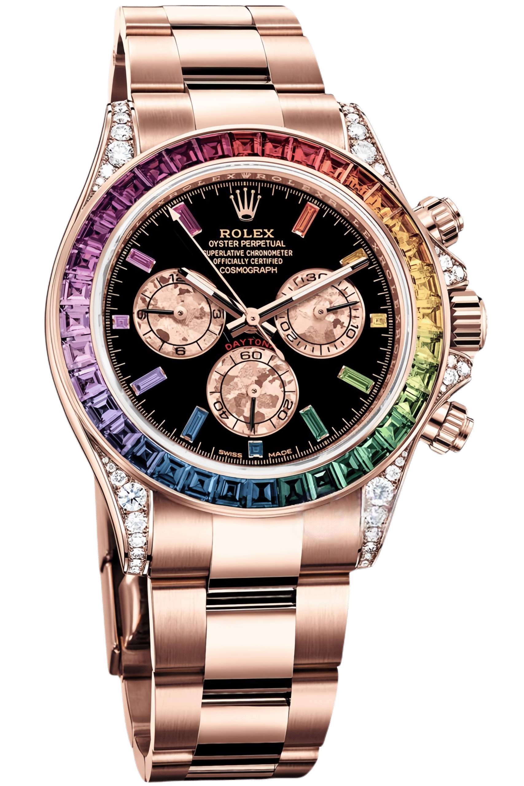 Rolex Daytona Rainbow Ref. 116595 RBOW Super Clone – 40mm Everose Gold Swiss Replica