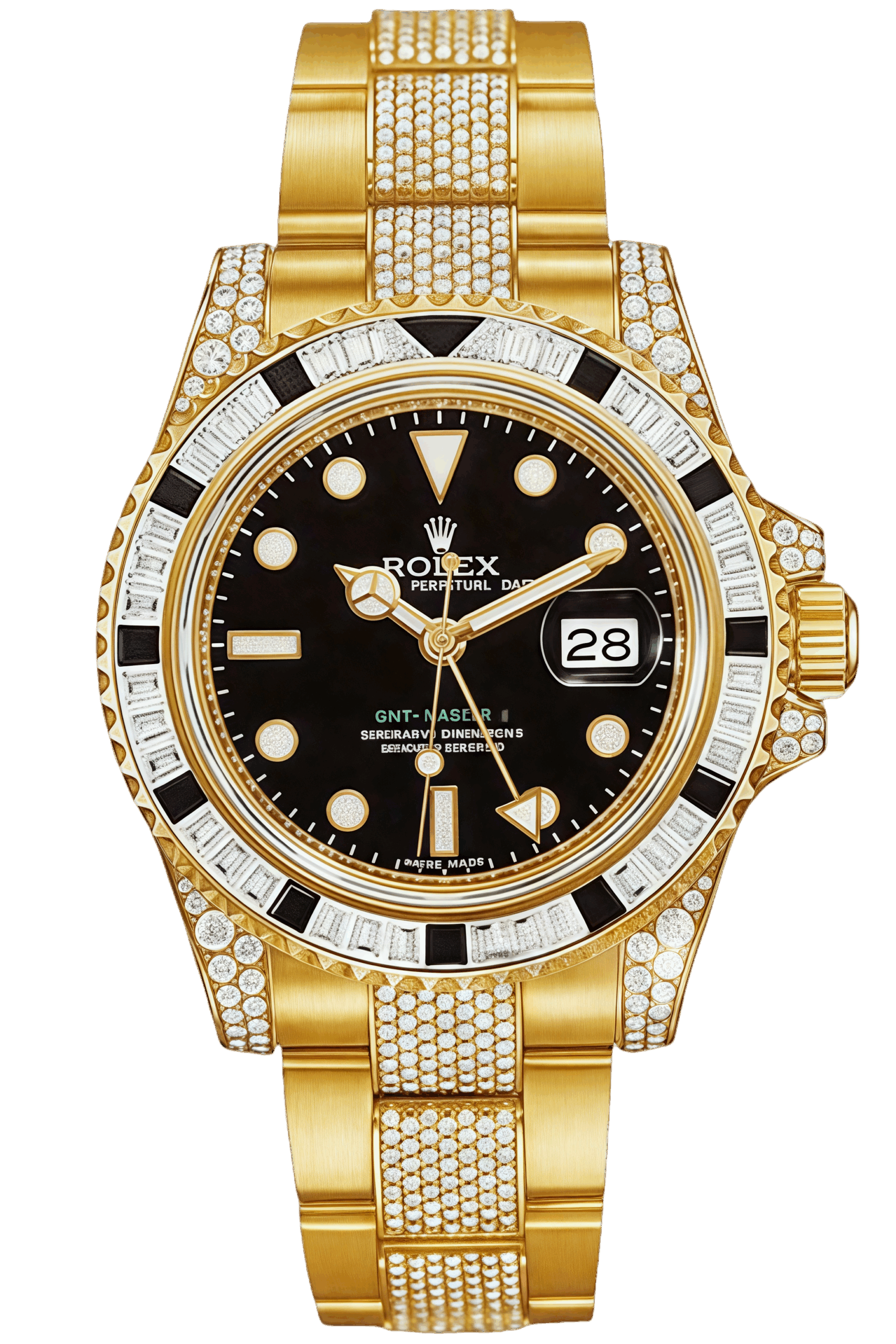Rolex GMT-Master II Black Sapphire Bezel Full Diamond Super Clone Swiss Replica Watch Ref 116758SANR-74769BRIL
