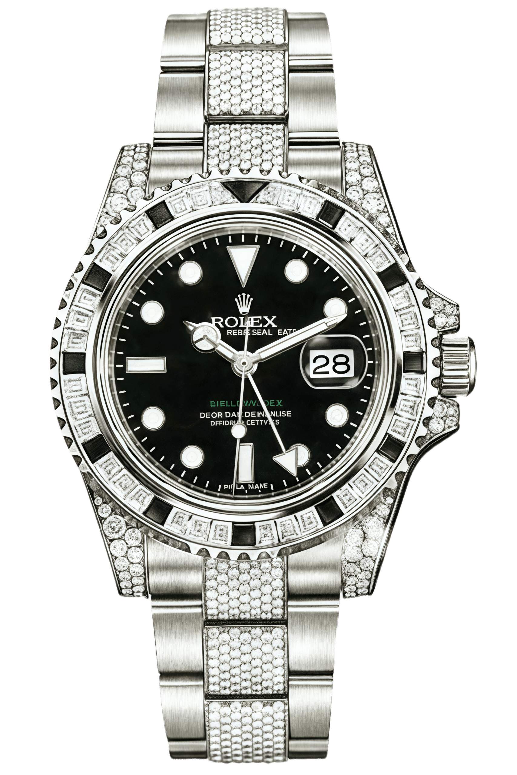 | Model | Rolex GMT-Master II Black Sapphire Bezel Full Diamond Super Clone Swiss Replica Watch |
