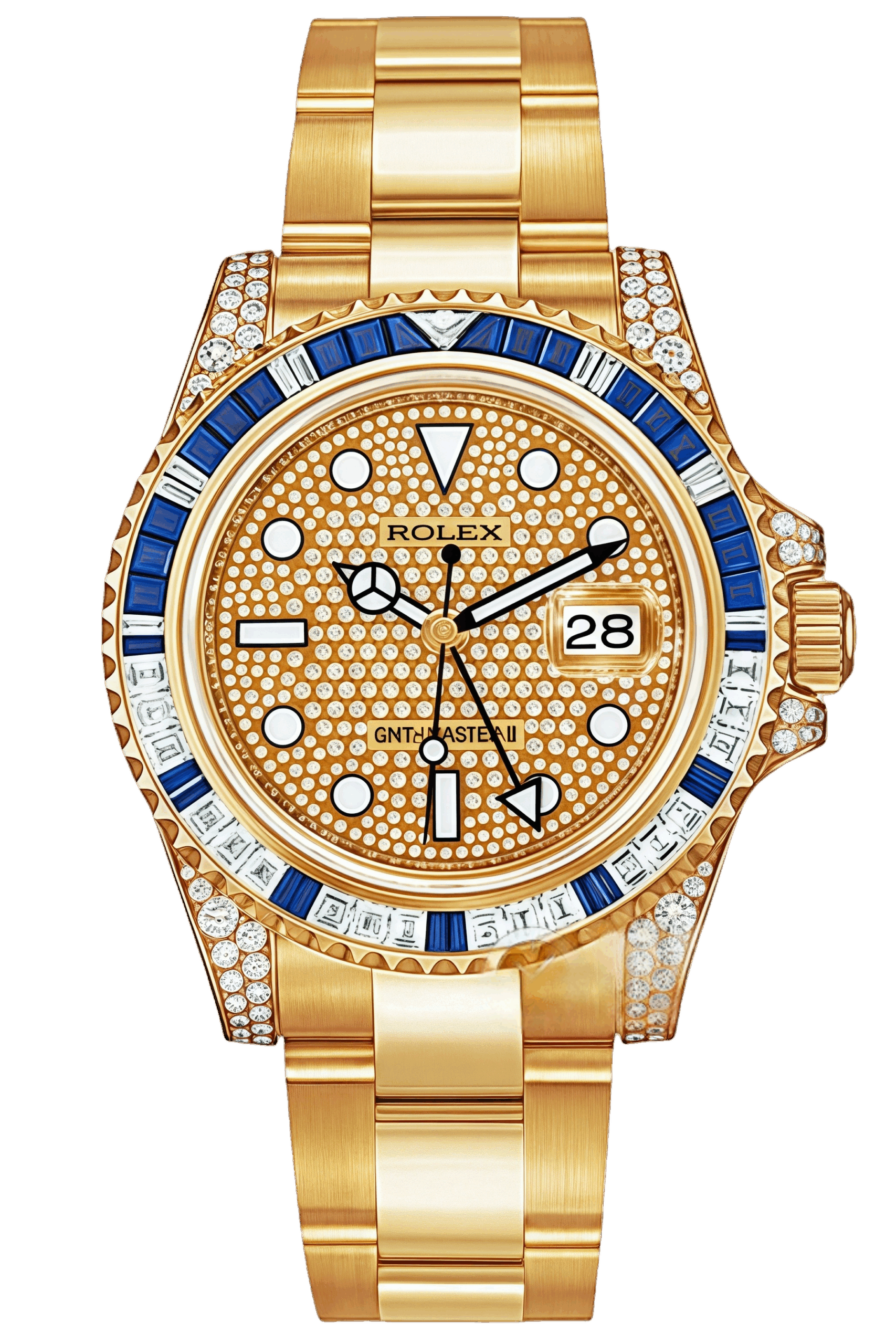 Rolex GMT-Master II Full Pavé Diamond Super Clone Swiss Replica Watch Ref 116758SA-78208 18K Yellow Gold