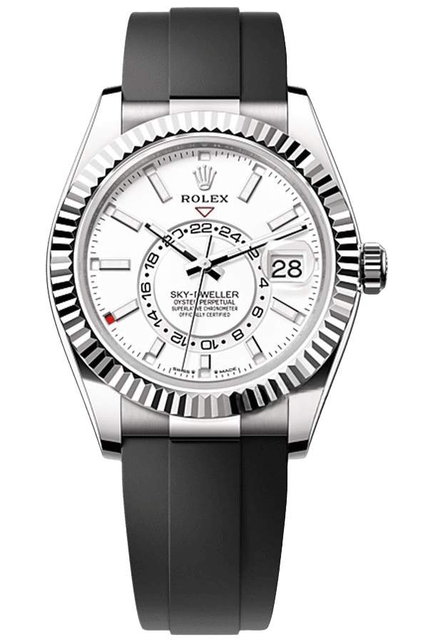 | Note: This is a top-tier 1:1 Super Clone Rolex Sky-Dweller with Swiss 9002 automatic movement. One of the most accurate fake Rolex Sky-Dweller replicas on the market with fully functional annual calendar and GMT. | |