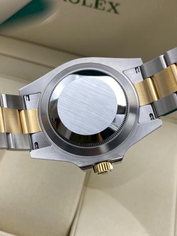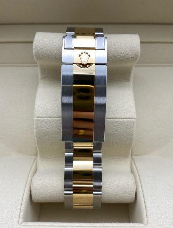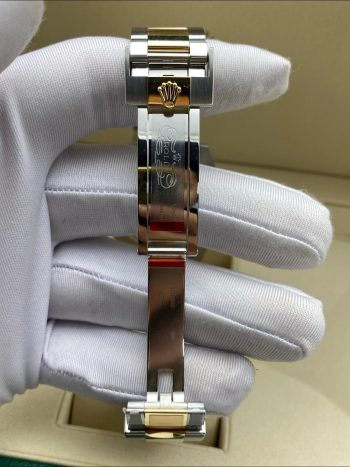 | BRACELET | – Oyster design, two tone flat three-piece links – Made with Solid 904L Grade Stainless Steel with DLC scratch-protection coating and 18k Yellow Gold plating on the middle links – Solid threaded screws, so you can easily remove bracelet links with just a small screwdriver – Folding OysterLock Safety Clasp with Rolex Glidelock extension system, exactly as Original |